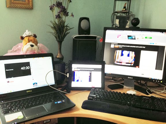 | The Critical Beauty Media Room (a/k/a my office) -featuring my laptop, my iPad, my PC. My iPhone took this picture! |