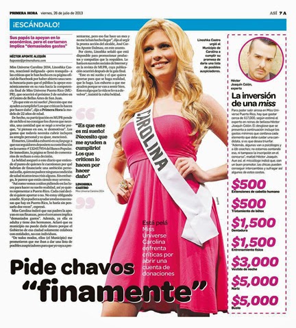 July 26 - HJ appears in a column in the Puerto Rican daily, Primera Hora, in which he postulates that to be successful in pageants, the candidates must spend thousands of dollars to improve themselves through cosmetic surgery, dieting, fitness training, botox injection, teeth whitening ... among other things!